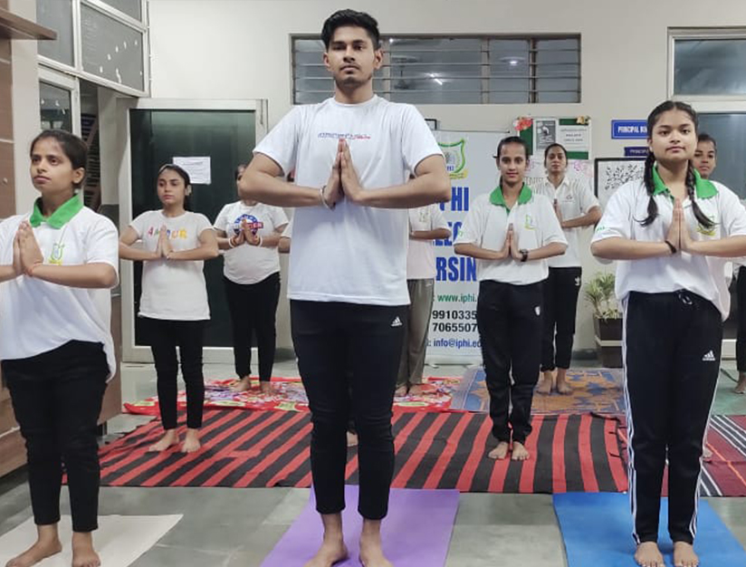 Students of IPHI performing yoga on world yoga day on 21st June 2024